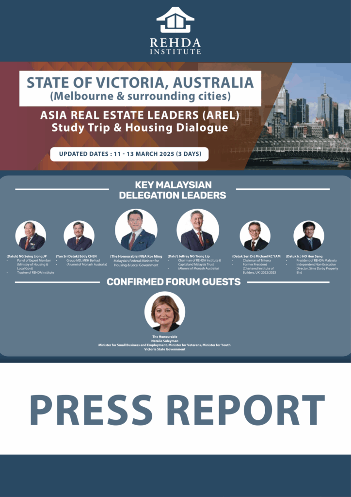 The AREL Study Trip & Housing Dialogue 2025 in Victoria, Australia, brought delegates to major urban developments including Fisherman’s Bend and state-led affordable housing projects. The programme offered in-depth tours and briefings, highlighting Australia’s approach to sustainable urban planning. Delegates, joined by YB Nga Kor Ming, were hosted for a special tea session by The Lord Mayor of Melbourne, Nicholas Reece. The trip culminated with the Housing Dialogue (Victoria–Malaysia), officiated by The Hon. Natalie Suleyman MP, fostering bilateral exchange on housing policy.